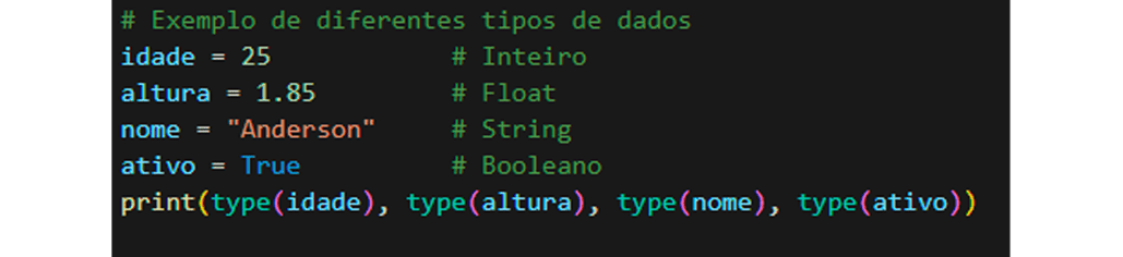 Inteiros (int): Números inteiros, como 10 ou -5.